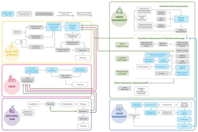In carrying out and supporting this process, we provide our communities and customers with infrastructures and services that are part of everyday life and can contribute concretely to the sustainable future of new generations. In addition, we work to spread a new culture of sustainability by promoting a vision of a cleaner world that respects the environment, territories and people.