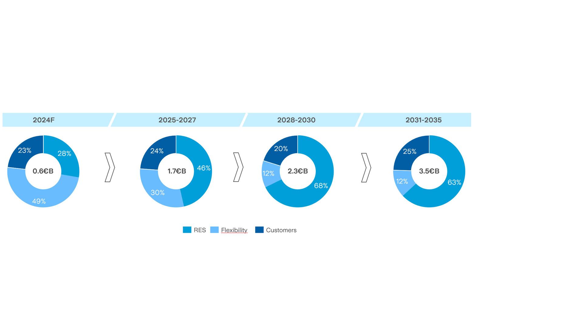 The investments are about 8.1 billion euros are allocated to the Energy business, of which 4.7 billion is related to the development of new renewable capacity and the creation of storage, 1.5 billion is allocated to flexibility (mainly related to the new CCGT in Monfalcone and the maintenance of existing plants), and 1.9 billion to support customer growth