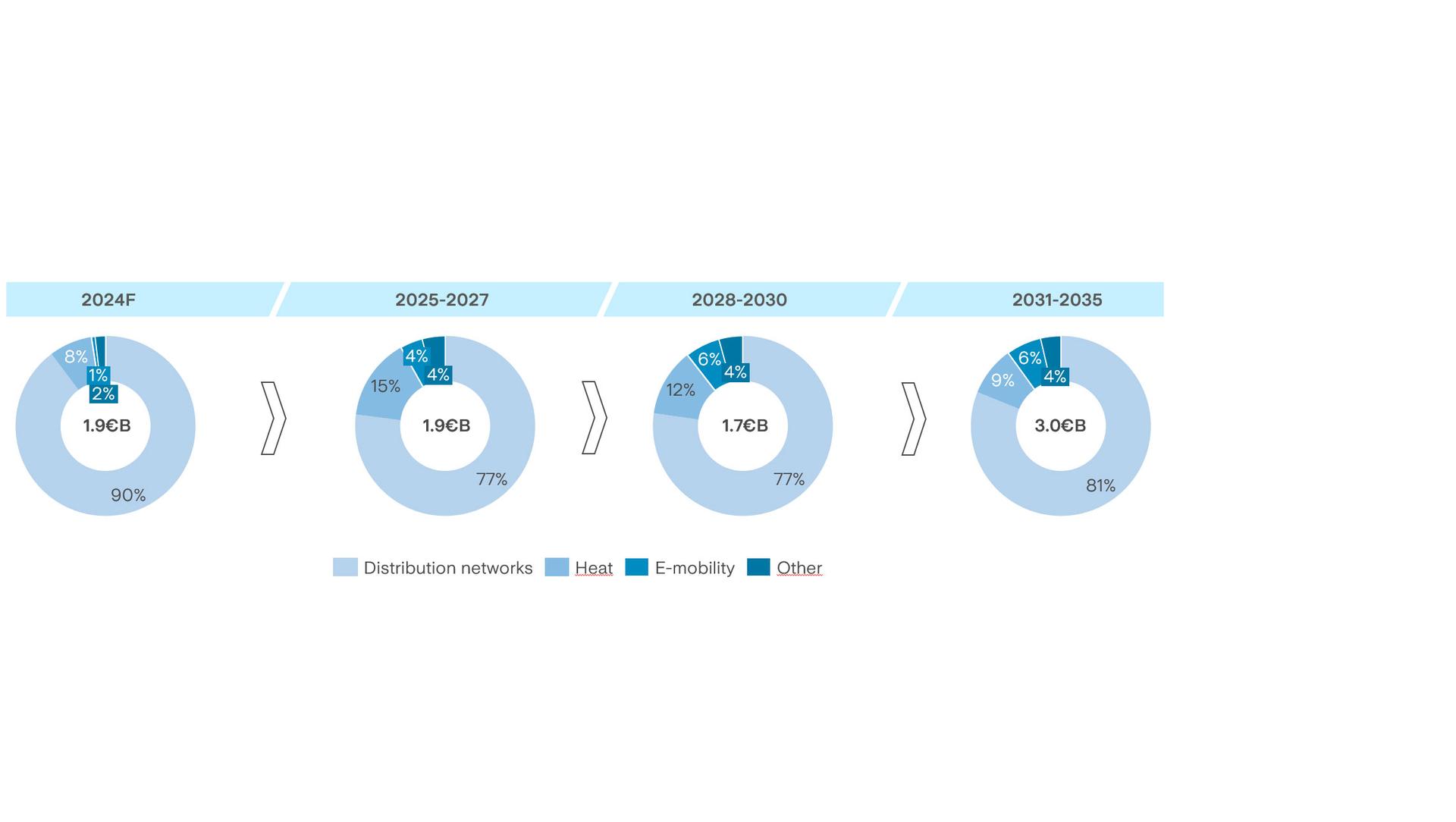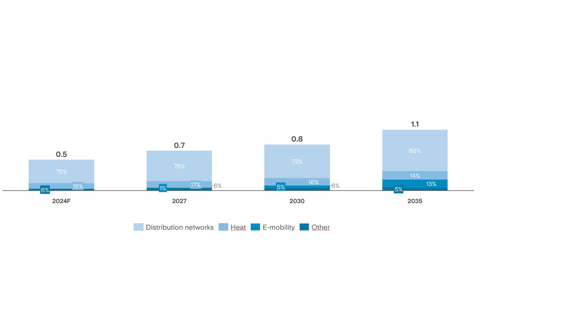 The investments are about 8.5 billion euros are related to the Smart Infrastructures Business Unit, of which 7.0 billion is related to the strengthening of distribution networks (including the acquisition of assets in Milan and Brescia), 0.9 billion in the Heat sector, 0.4 billion for the development of the electric mobility business, and 0.2 billion for the development of Public Lighting and Smart City businesses