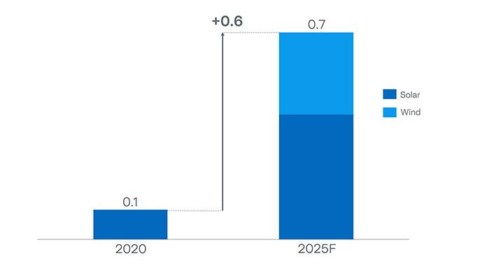 Over the past 5 years, we have developed new renewable capacity to meet growing demand for green energy at competitive prices reaching 0.7 GW of installed capacity across solar and wind.