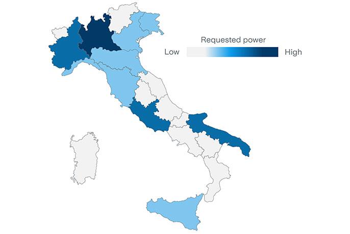 Source: Terna; Position paper “Italy of data centers", A2A-TEHA, 2025; AIRU, BNEF