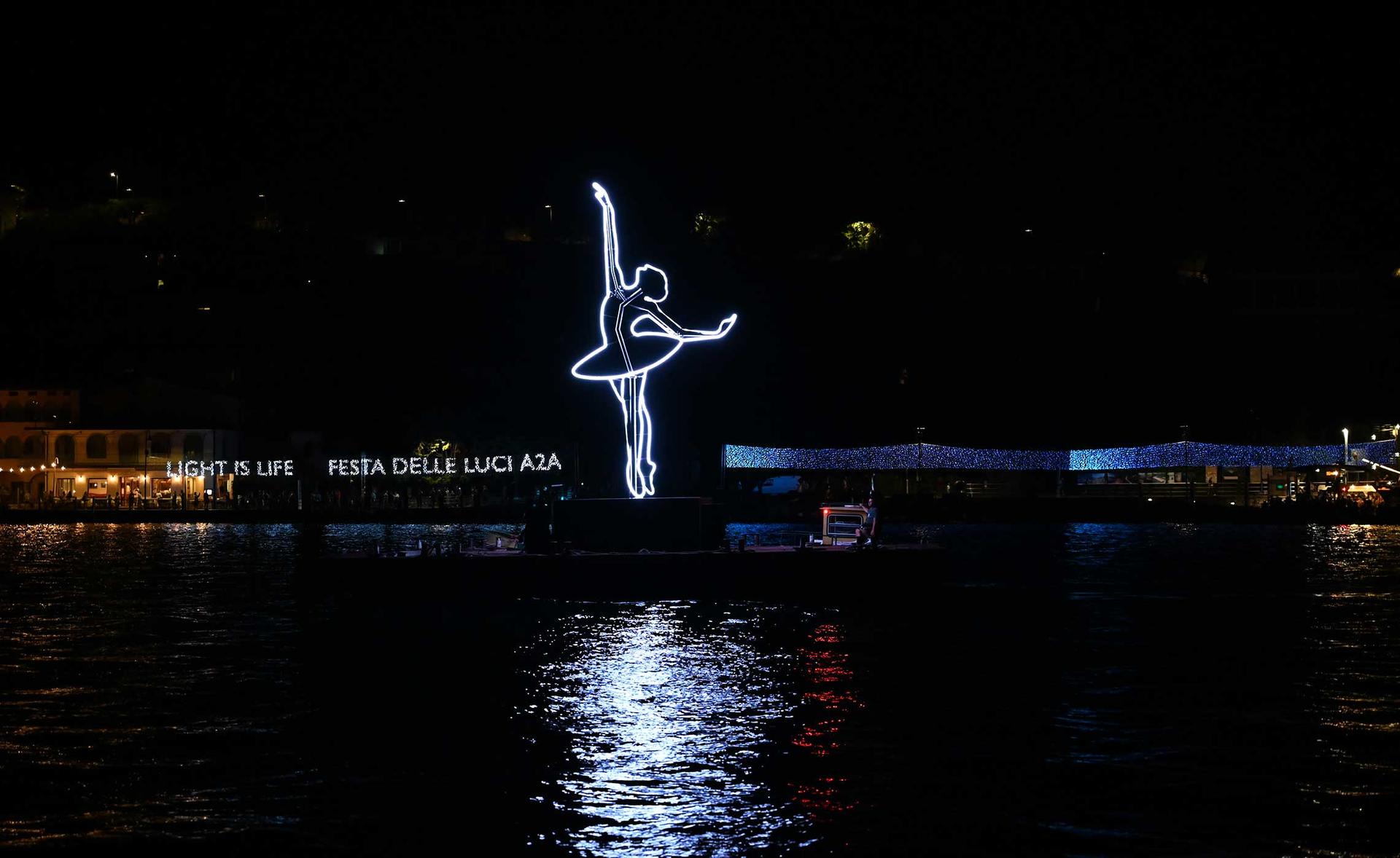 Il direttore artistico Angelo Bonello ha previsto altre due incantevoli opere: “Ballerina Sequence” e “Floating Ballerina” che navigherà nelle sere dei weekend sul lago.