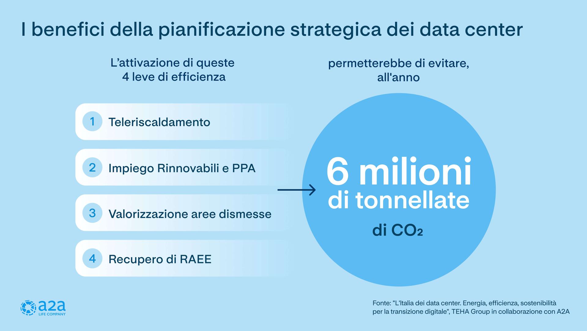 In uno scenario di sviluppo a pieno regime, una pianificazione strategica dei data center potrebbe: