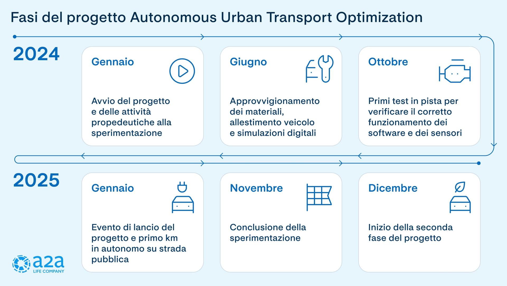 L'obiettivo principale del progetto è lo sviluppo di un prototipo di un veicolo elettrico a guida autonoma, una Fiat 500e, equipaggiata con un AI-driver che garantisce la capacità di movimentazione autonoma a bassa velocità. Il progetto sarà sviluppato nell’arco di due anni, all’interno dell’area urbana di Brescia, per monitorare l’interazione con gli altri utenti della strada e raccogliere dati utili a perfezionare il software di guida autonoma.