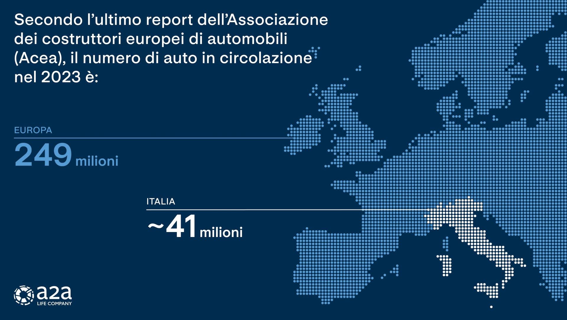 Secondo l’ultimo report dell’Associazione dei costruttori europei di automobili (Acea), nel 2023, il numero di auto in circolazione in Europa ha superato i 249 milioni. In Italia, il numero di automobili per abitante è particolarmente elevato: si contano 694 veicoli ogni mille abitanti, un dato nettamente superiore alla media europea di 563.