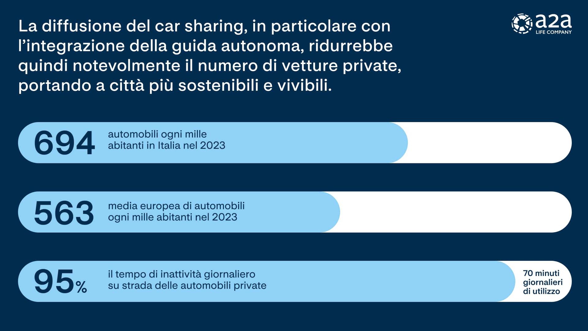 L'implementazione di un servizio di car sharing elettrico e autonomo permette di ridurre le emissioni di CO2, contribuendo alla sostenibilità urbana e alla decarbonizzazione e migliorando la qualità dell’aria e della vita nelle città.