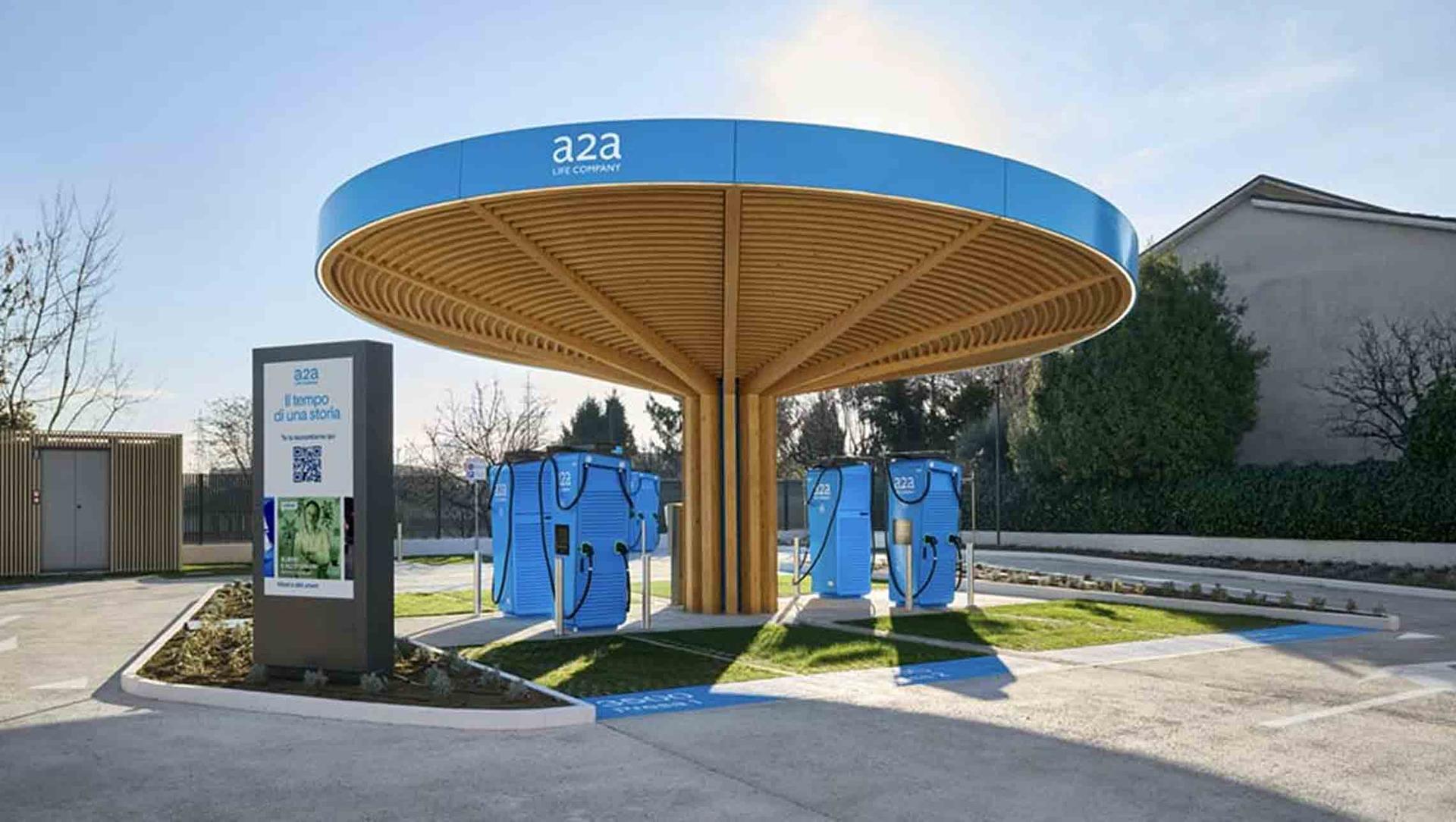 Con il nostro primo Power Hub a Monza, noi di A2A ci impegniamo a creare un’infrastruttura per la mobilità elettrica che integra ricarica ad alta potenza, energia rinnovabile e tecnologie avanzate. A partire dal design, firmato dallo Studio Park, che contraddistingue il sito con un’architettura moderna e funzionale, rappresentata soprattutto dalla pensilina circolare interamente in legno lamellare, a copertura delle infrastrutture e in grado di recuperare l’acqua piovana per l’irrigazione delle zone verdi.