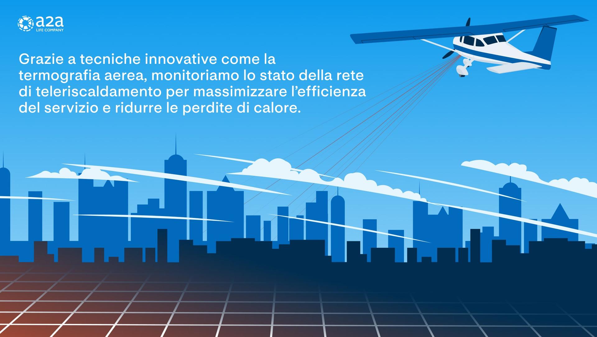 Noi di A2A crediamo che l'adozione di tecnologie innovative, come la termografia aerea, rappresenti un passo importante verso un futuro più sostenibile, più verde e più sicuro per tutti. Grazie a questi strumenti all'avanguardia, siamo in grado di monitorare e migliorare l’efficienza delle reti di teleriscaldamento, garantendo un servizio sempre più affidabile e vantaggioso per i cittadini. L'innovazione tecnologica non è solo una scelta per il progresso, ma un impegno concreto al servizio della comunità e del Pianeta.